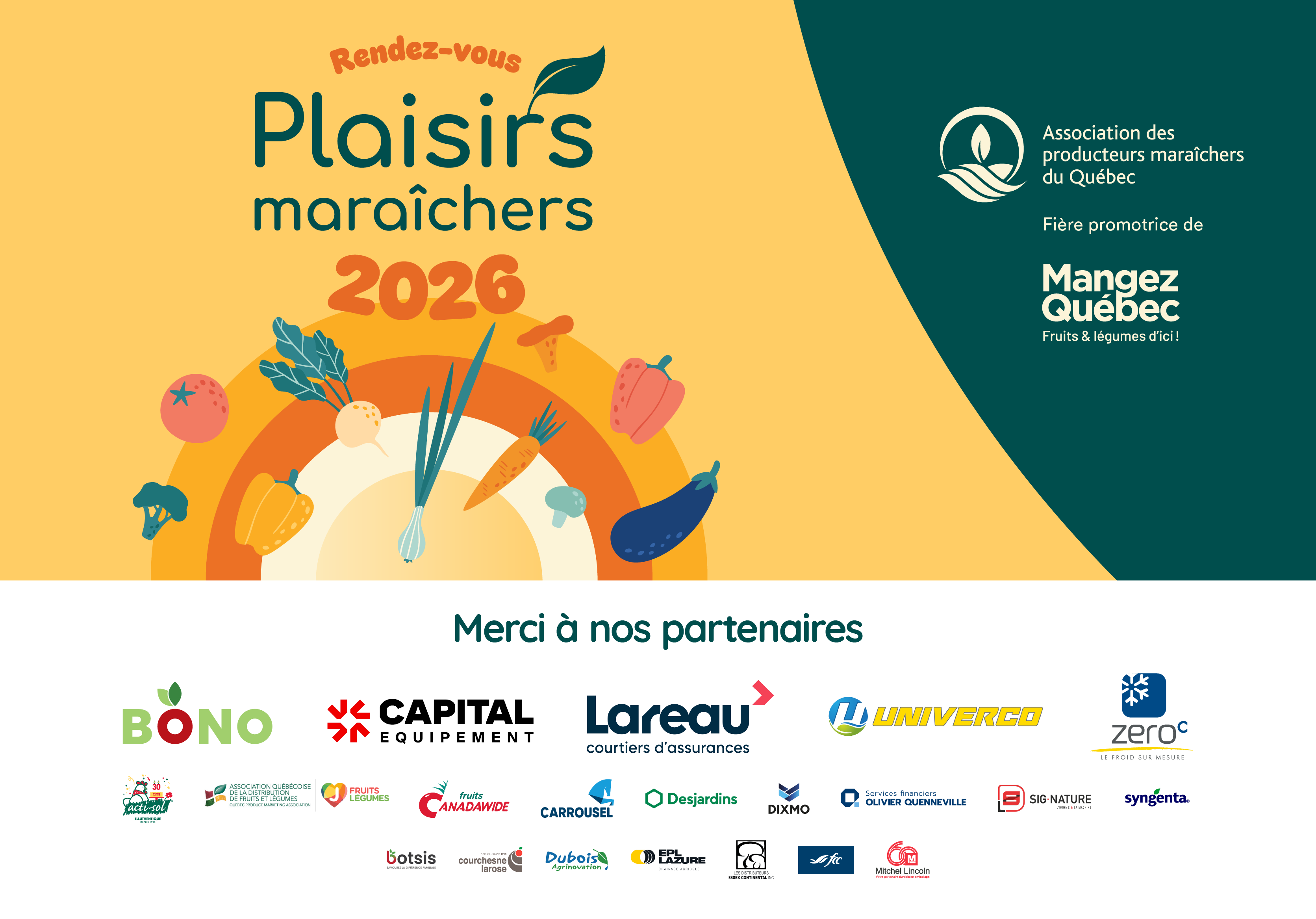 Inscription Rendez-vous plaisirs maraîchers 2026 Vos informations Question Title * 1. Nom de l'entreprise : Question Title * 2. Votre nom : Question Title * 3. Votre numéro de téléphone : Question Title * 4. Votre adresse courriel : Question Title * 5. Nombre de billets: Question Title * 6. Adresse de facturation: Question Title * 7. Adresse d'envoi des billets si différente de l'adresse de facturation: Question Title * 8. Est-ce que vous, ou l'une des personnes pour qui vous réservez des billets, avez une allergie ou une intolérance alimentaire ? Oui Non Question Title * 9. Si vous avez répondu oui à la question précédente, veuillez nous indiquer l'allergie ou l'intolérance alimentaire concernée, ainsi que le nom complet, l'adresse courriel et le numéro de téléphone de la personne. Allergie(s) et/ou intolérance(s) alimentaire(s) : Nom complet : Courriel: Numéro de téléphone: Suiv.